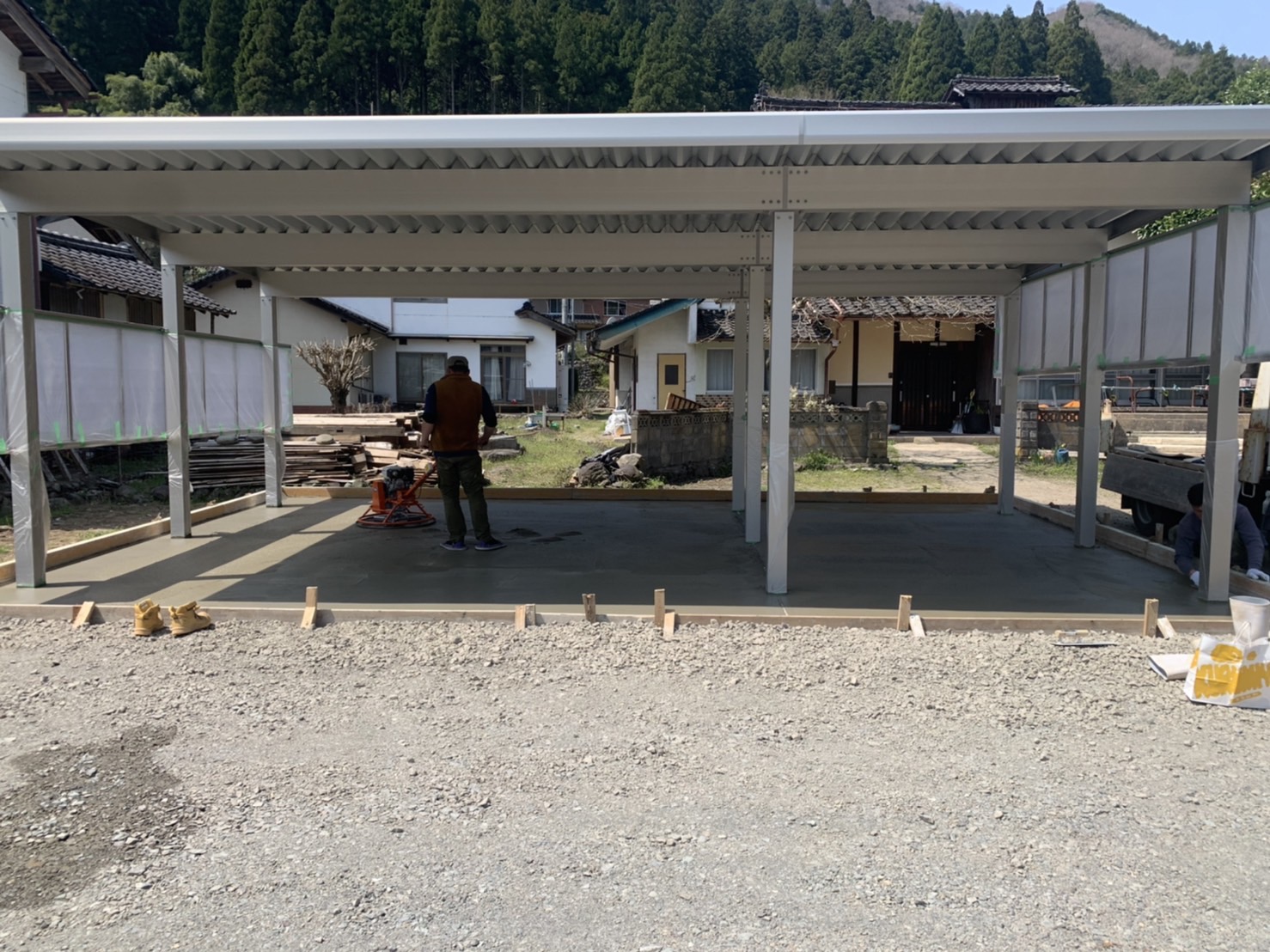 今日は先日からお世話になっています養父市内O様邸のカーポートのコンクリート打設です。